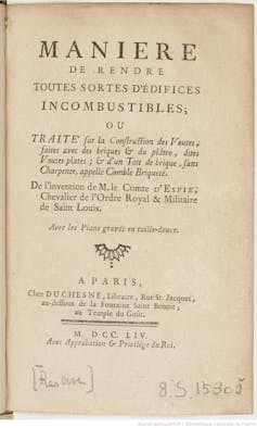 Esta circunstancia llevo al Conde a intentar patentar este sistema para construir cubiertas incombustibles, justificándolo a través de la publicación de la Maniere de rendre toutes sortes d'édifices incombustibles (1754). La obra tuvo un gran éxito y fue traducida inmediatamente al inglés y alemán, y también al castellano como Modo de hacer incombustibles los edificios (1776) de Joaquín de Sotomayor.