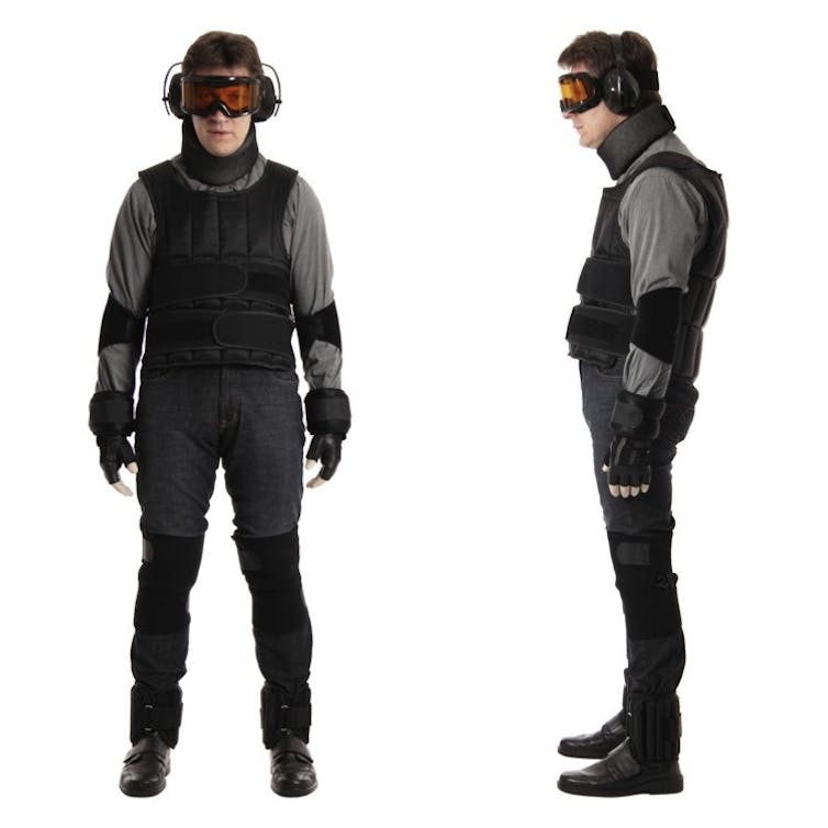 En el apartado electrónico, el traje cuenta con dos dispositivos: unos auriculares para simular acúfenos –zumbidos internos– y unos guantes que provocan temblores en las manos.