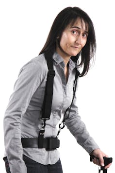 Si además queremos que el usuario experimente ciertas patologías, también hay componentes que se ocuparán de ello. Es el caso de unas espalderas similares a las que utilizan los motoristas, pero provistas en su interior de dos columnas de pinchos de acero que simulan los dolores de espalda. Una rodillera, dotada igualmente con pinchos, recrea las molestias de una artrosis de rodilla. Y por último, un simulador de cifosis encorva la postura del usuario mediante un lazo ajustable al cuello y unido a un cinturón.