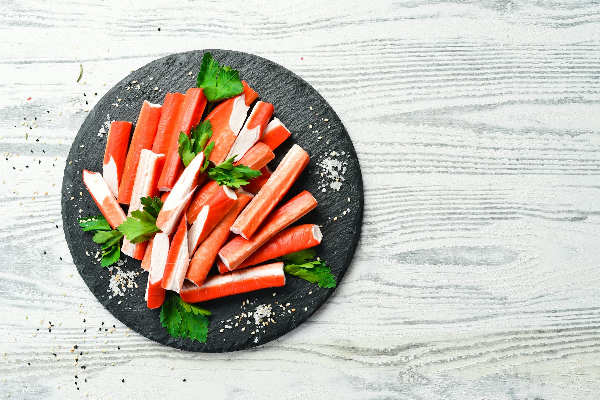 Otros de los sucedáneos de pescado con nombre paradójico son los “palitos de cangrejo” o “barritas de surimi”. Su nombre se debe a que imitan la apariencia y la textura fibrosa de la carne del cangrejo, aunque en realidad no llevan nada de este marisco, o si acaso tan solo el extracto de cangrejo como colorante. Su éxito radica en su presentación en porciones individuales y en su tiempo prolongado de conservación. Es habitual usarlos para preparar aperitivos o en ensaladas.