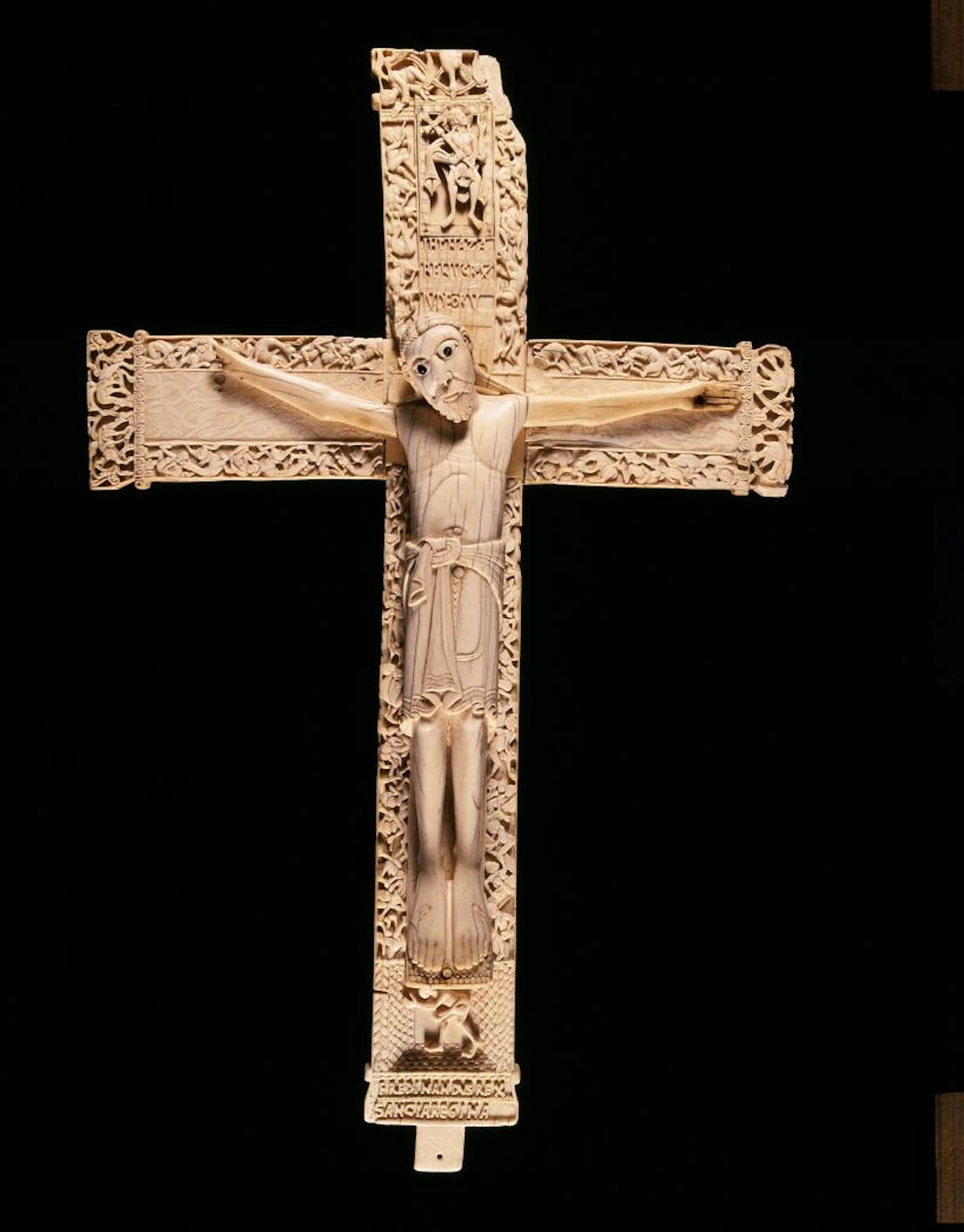 Por su parte, el Crucifijo de Fernando I y Sancha ha sido unánimemente calificado como la obra cumbre del mecenazgo de la pareja real: destinado a albergar una reliquia de la Santa Cruz, se trata de la primera representación tridimensional del Crucificado realizada en la península ibérica.